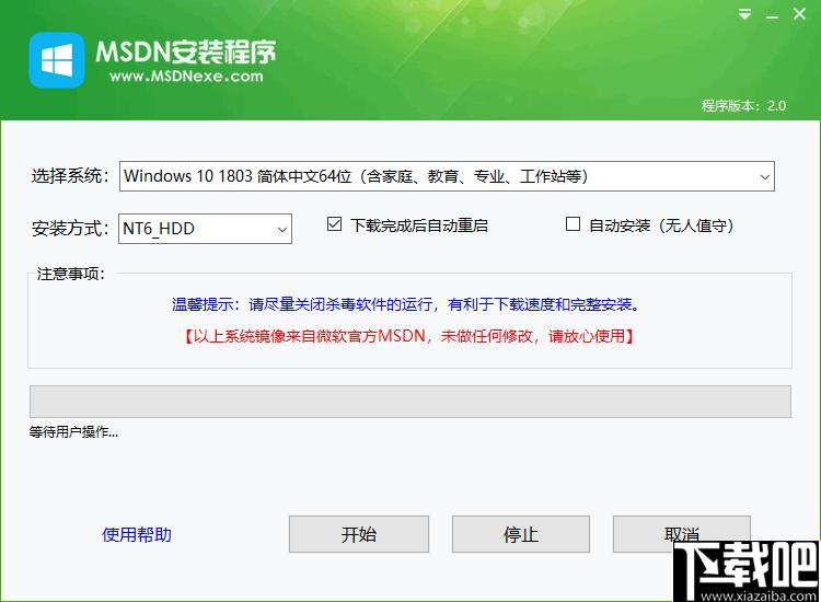 5、设置完以后就可以点击“开始”按钮了,软件会按照您设置的方式进行MSDN安装的。